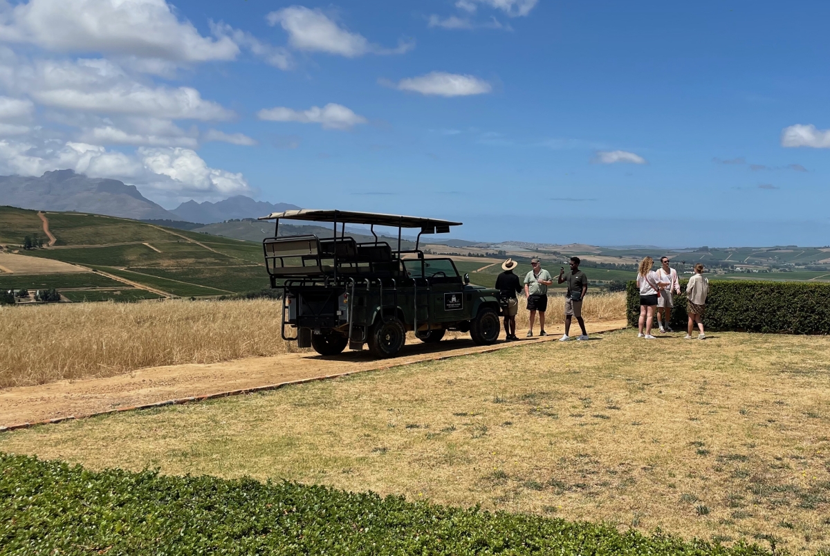 In Afrika is het met Kerst zomer, dus we leefden buiten, in onze eigen familie-bubbel. Er waren weinig toeristen. Zelfs op Cape Point en de Tafelberg, de grote topics van Afrika, stonden wij bijna alleen met onze kids. Heerlijk ! Met een jeep door de wijnvelden en zalig genieten van een glaasje Vonkelwijn met zicht op de Simonsberg.