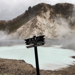De omgeving van Noboribetsu heeft nog meer zeer levend landschap te bieden. Stomende meren, borrelend water. Even verderop vind je de caldera van Usuzan, samen met de caldera van Toya niet voor niets Unesco Global Geopark. Voordurend zijn er uitbarstingen maar de mens heeft hier door ervaring leren samenleven met de kracht van de natuur.