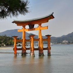 Dan reis je naar Hiroshima. Het oorlogsverleden doet je nadenken over de wereld. Je spreekt persoonlijk met een slachtoffer van de atoombom. Op een heel andere manier doe je dat op het eiland Miyajima. Ook een plaatje van de kalenders en postzegels: de beroemde grote poort die op het water lijkt te drijven bij hoogtij.