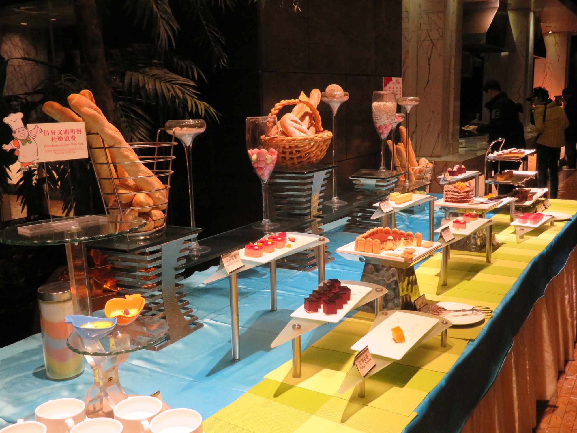 Het ontbijt is eerder Chinees en beperkt westers. Dat is niet onlogisch gezien de locatie. Je bent ten slotte in hartje China! Vormt dit een probleem, laat het dan weten aan je lokale Chinese gids zodat hij/zij dit tijdig, best bij check-in, aangeeft. Er is wel degelijk een westerse optie als je het maar tijdig aangeeft. Probeer 's avonds het dinerbuffet een keer! Voor een klein bedrag (tussen 125 en 140 RMB) is er een all-you-can-eat (and drink) concept. De keuze is werkelijk enorm.