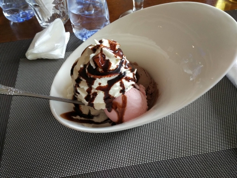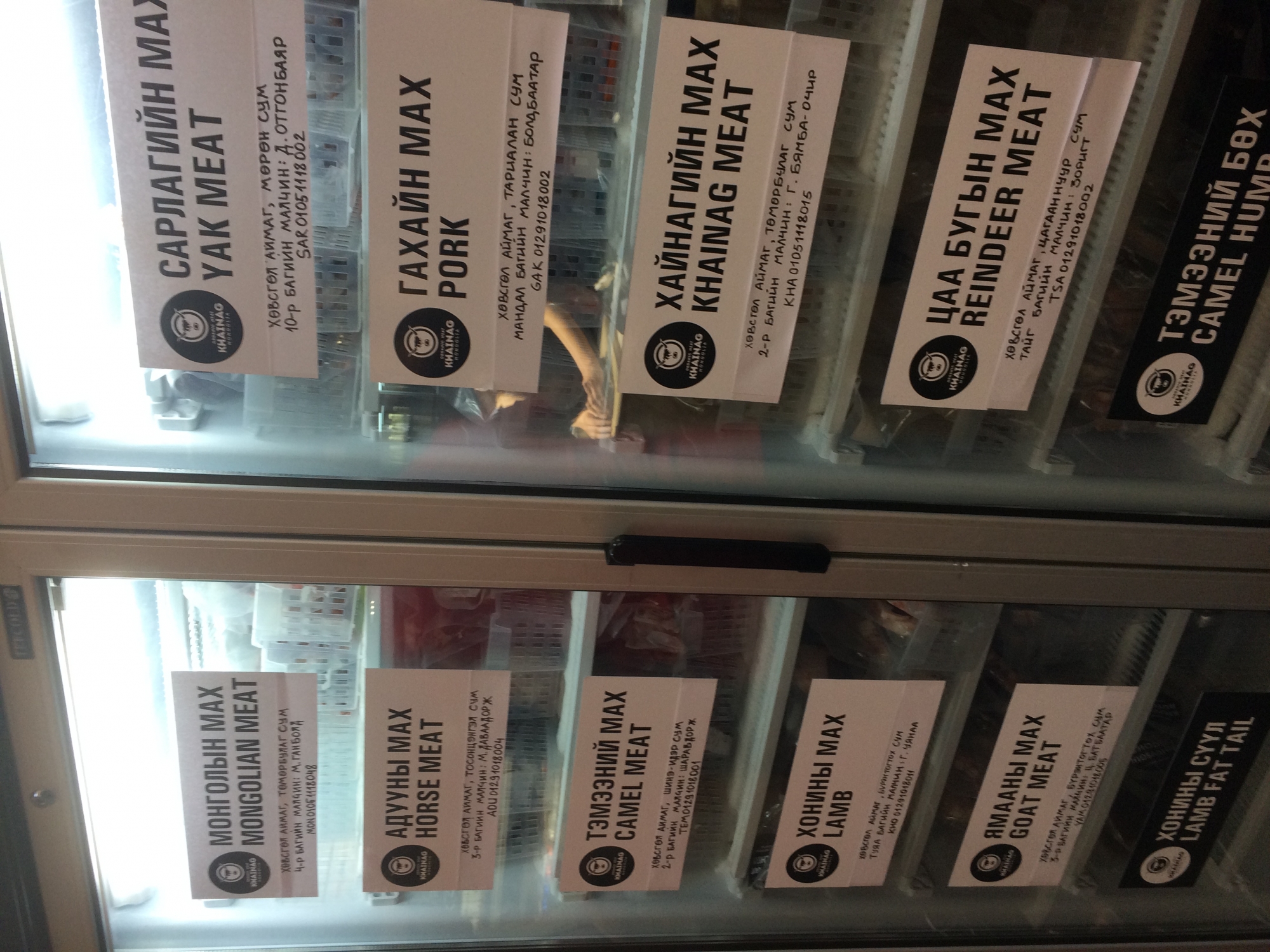 Het hotel zelf heeft ook een restaurant. Dat is een meteen typisch Mongoolse ervaring. Vlees is het hoofdingrediënt van het menu. Je komt binnen, kiest je type vlees. Daar zijn ook voor een westerling ietwat bijzondere soorten bij: kameel, rendier en yak bijvoorbeeld. Alles wordt voor je bereid, je verdeelt het in stukjes en eet het dan met de handen op, gerold in een blaadje sla, kool of soortgelijke. Het ontbijt is een uitgebreid buffet dat alle windstreken combineert: Amerikaans-Europees-Chinees, zoiets. Je vindt er ook een reeks organische producten en typisch Mongoolse gerechten, waaronder een reeks speciale yoghurtproducten.