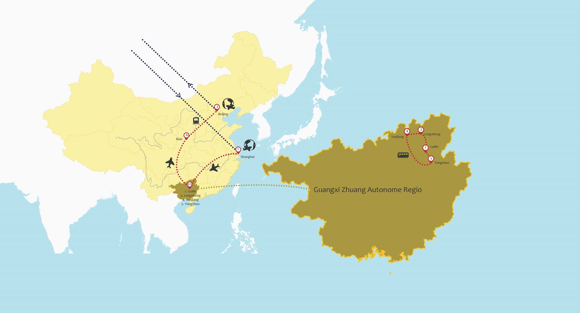 Een andere keer proef je, na de mooiste Li-riviercruise, heerlijke gezonde gerechtjes bij een familie van aalscholvervissers in Xingping. Dit gebied in Zuid-China met zijn karstbergen, rivieren, rijstterrassen, rijstveldjes en theeplantages brengt een wondermooie en frisse aanvulling bij alle must-sees die bij een eerste Chinareis horen.