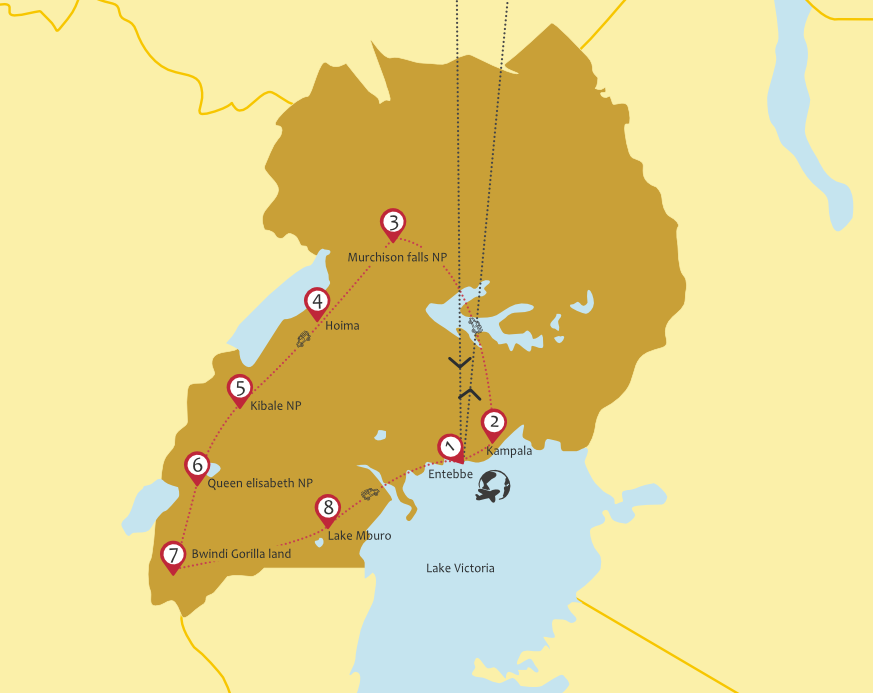 • Toegang tot alle Nationale Parken: Murchison Falls NP, Kibaale Forest NP, Queen Elizabeth NP & Bwindi Gorilla Land NP